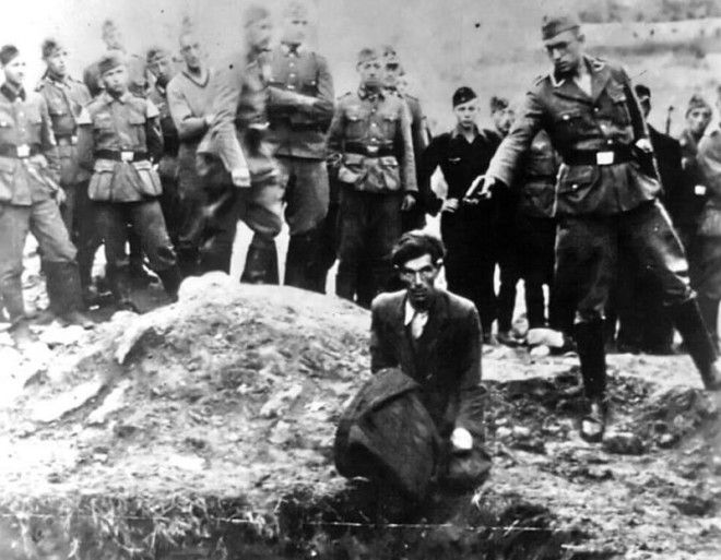 Этот человек - последний из 28 000 еврейских жителей Винницы, расстрелянных фашистами. В этот момент мужчина стоит на краю одного из множества рвов, заполненного мертвыми телами его соплеменников. Чем дольше мы вглядываемся в эту фотографию, тем, кажется, труднее нам понять невероятный ужас происходящего, все, что происходит в голове у этого человека и, тем более, в головах его палачей.
