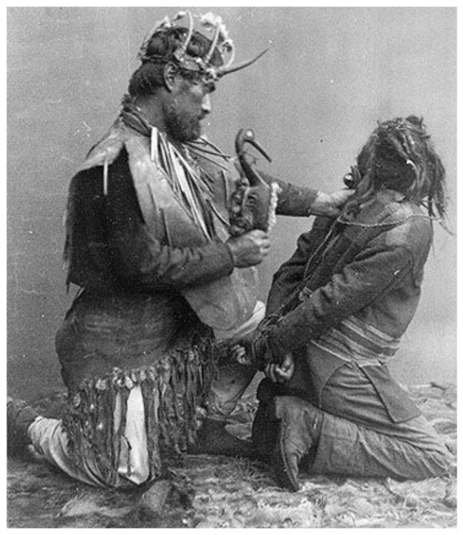 Согласно религиозным верованиям шаманизма, человек, способный в состоянии транса общаться с духами и излечивать болезни. Шаманское облачение, как и бубен, было индивидуальным, принадлежащим лично шаману культовым предметом, позволявшим осуществлять обрядовые действия и, воссоздавая образ зверя, птицы призван был внушать уважение и ужас.