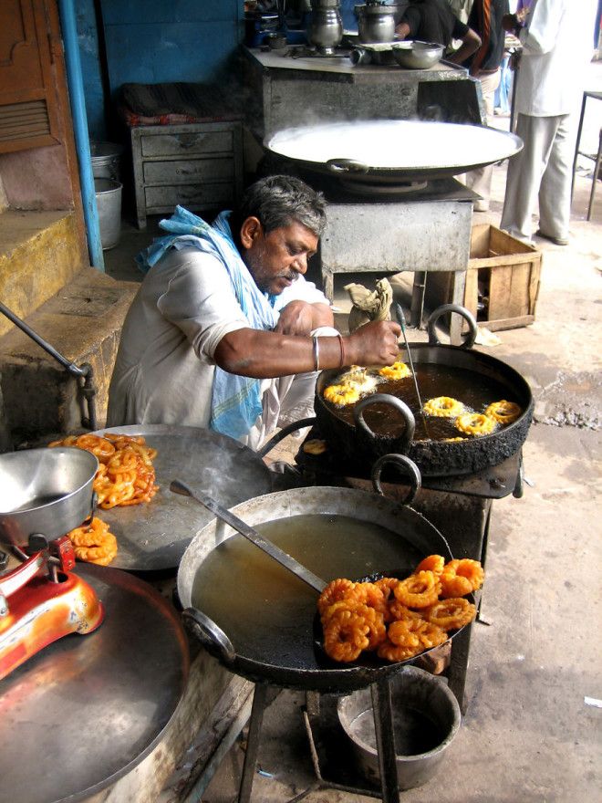14. А это продавец индийских сладостей джалеби в Дели (Индия).