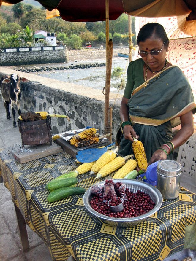 5. А это торговка кукурузой на гриле в Мумбаи (Индия).