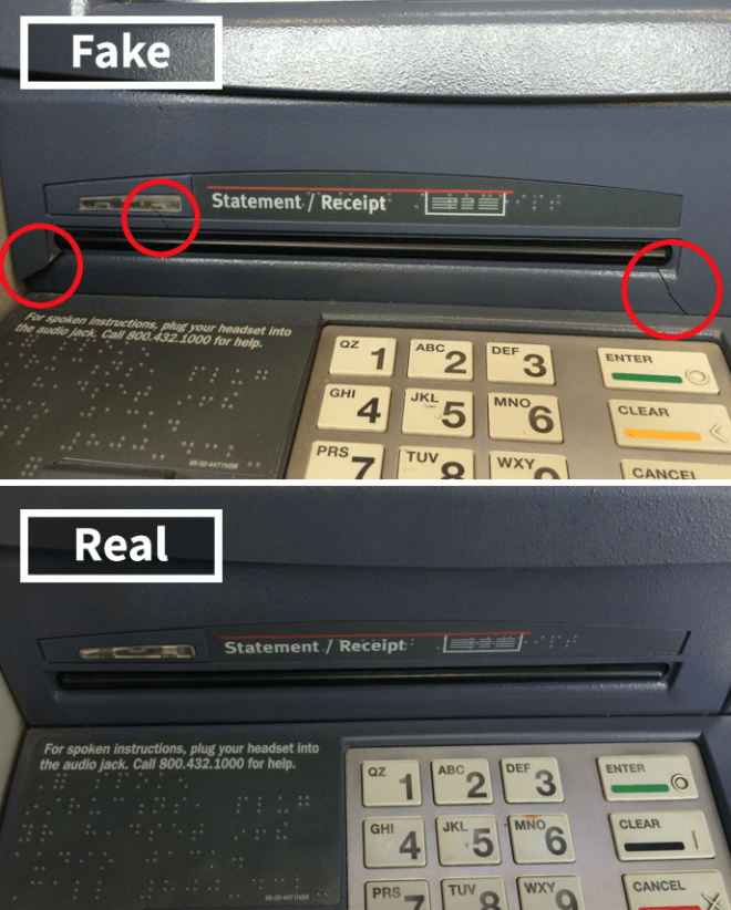 1. Подденьте клавиатуру. Если под ней есть еще одна, то это проделки мошенников. Если нет, то вы сломали банкомат.