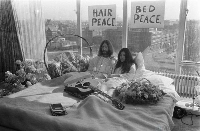 25 марта 1969 года Джон Леннон и его жена Йоко Оно начали свой медовый месяц с того, что они назвали кампанией «В постели за мир», которая проводилась в номере амстердамского отеля Hilton. Это была экспериментальная, ненасильственная форма протеста против войны. Леннон и Оно сидели полностью одетыми на кровати, рядом с которой висели нарисованные от руки плакаты с надписями «Волосы за мир» и «Постель за мир». Они также пригласили в свой номер представителей глобальных СМИ, чтобы 12 часов в день обсуждать с ними вопросы, связанные с миром.